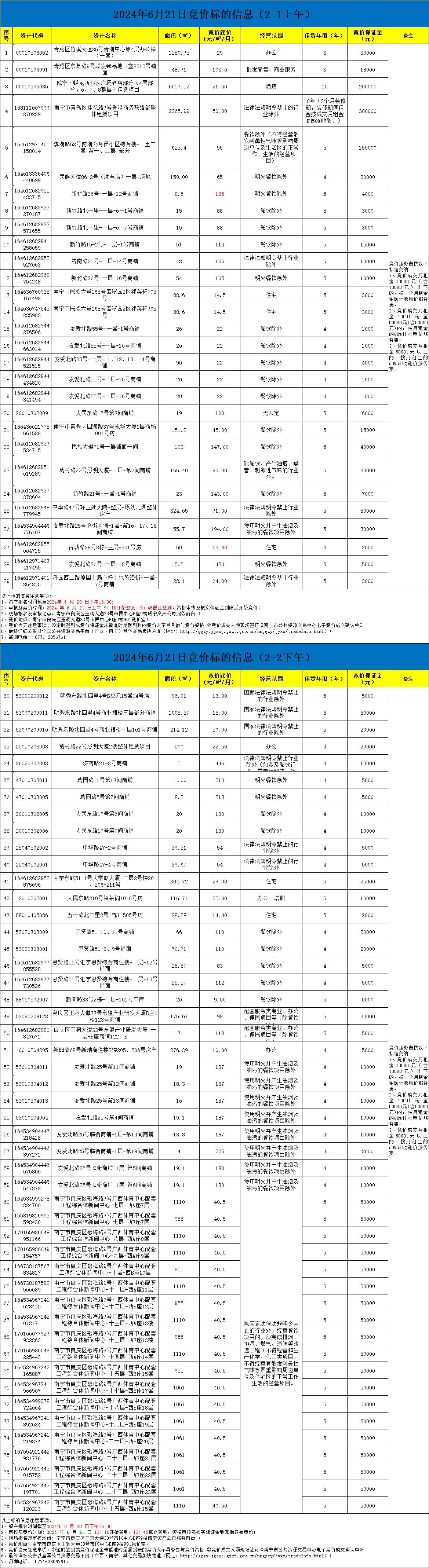 2024年6月21日竞价标的信息(现场竞价)