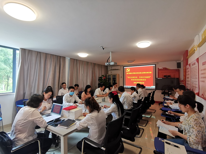 图 活动现场图 朗诵革命诗词图 重温入党誓词2021年4月23日下午,威宁酒店公司机关和五象山庄联合党支部在公司108会议室开展“铭记光辉历史 传承红色基因”革命诗词欣赏和朗读活动,并为党员过政治生日。活动中,党员们观看了《英雄祭》及《祖国万岁》经典红色诗词朗诵视频,党支部的两个党小组还特别准备了4个现场朗读节目,慷慨激昂、精神饱满的朗诵,诉说着对党和国家的热爱和感激之前,赢来了阵阵掌声。第一党小