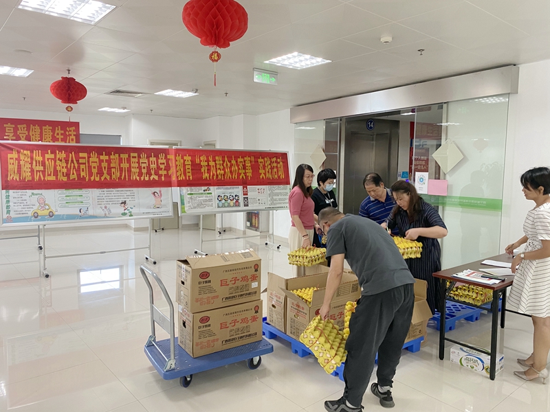 威耀供应链公司围绕“党建引领、产业带动、精准发力、乡村振兴”十六字方针,积极开展“我为群众办实事”实践活动,主动探索将食材集采集配业务与产业扶贫相结合,积极采购扶贫农产品上线“威耀食材”信息化平台销售,拓宽扶贫农产品销售渠道,2021年3月至7月,威耀供应链公司采购扶贫农产品182.26吨,共计138.52万元。