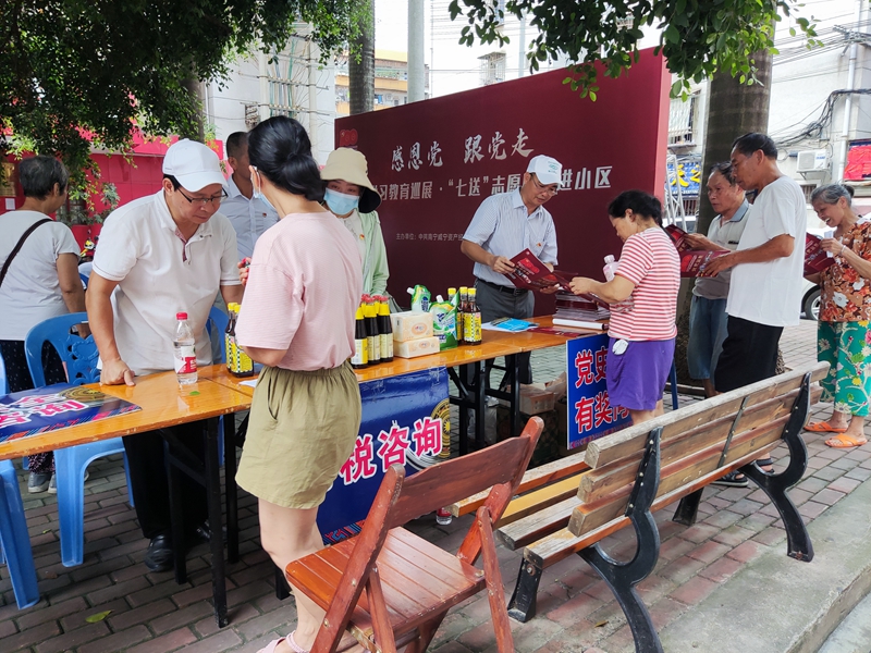 为了让群众走进党史深处,让党史走进群众心里,近日,南宁威宁资产经营有限责任公司党委联合南宁市融达小额贷款有限责任公司党支部、南宁市星期六爱心公益志愿者协会、中志协应急委广西中医康养服务队等单位在南宁市西乡塘区义忠街60号原糖业烟酒公司生活区开展“感党恩 跟党走”党史学习教育巡展、“七送”志愿服务进小区活动,以务实举措“送学上门”,将“文化大餐”送到群众家门口,继续推动党史学习教育热起来、活起来,以实际行动献礼中国共产党百年华诞。