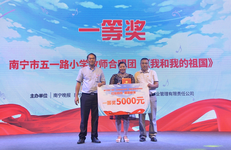 《我和我的祖国》《没有共产党就没有新中国》《妈妈教我一支歌》《壮锦献给毛主席》《祖国不会忘记》……6月26日晚,一首首经典红色歌曲在位于南宁市青秀区的威宁·金菊邻家广场唱响,当晚,威宁邻家广场杯“红色歌曲大家唱”网络拉歌赛在这里举办颁奖晚会,表彰获奖的17个作品。现场,数百人聆听经典红色歌曲,共同庆祝中国共产党成立100周年。