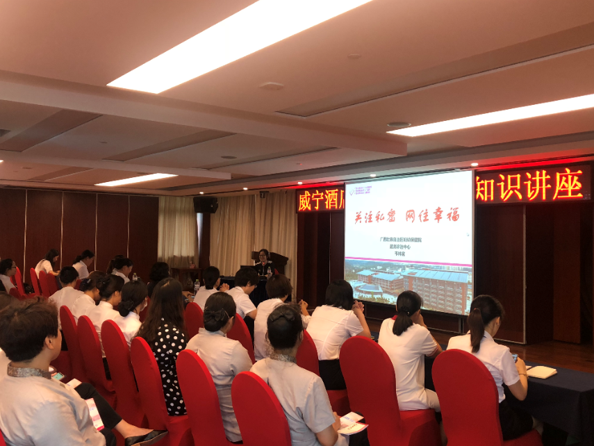威宁酒店公司女职工占公司总职工人数的66.70%。为提高广大女职工的健康和保健意识,拓宽妇女保健知识面,保护女职工的身心健康,8月5日下午,威宁酒店公司工会举办女职工保健知识讲座,邀请广西壮族自治区妇幼保健院韦宜林副主任医师、韦秋华副主任医师和雷佳主治医师到现场授课。