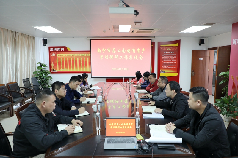 11月18日,南宁市总工会副主席陈国任一行5人到南宁威宁集团开展国有资产管理工作调研。集团纪委书记韦登香及相关部门负责人参加调研。
