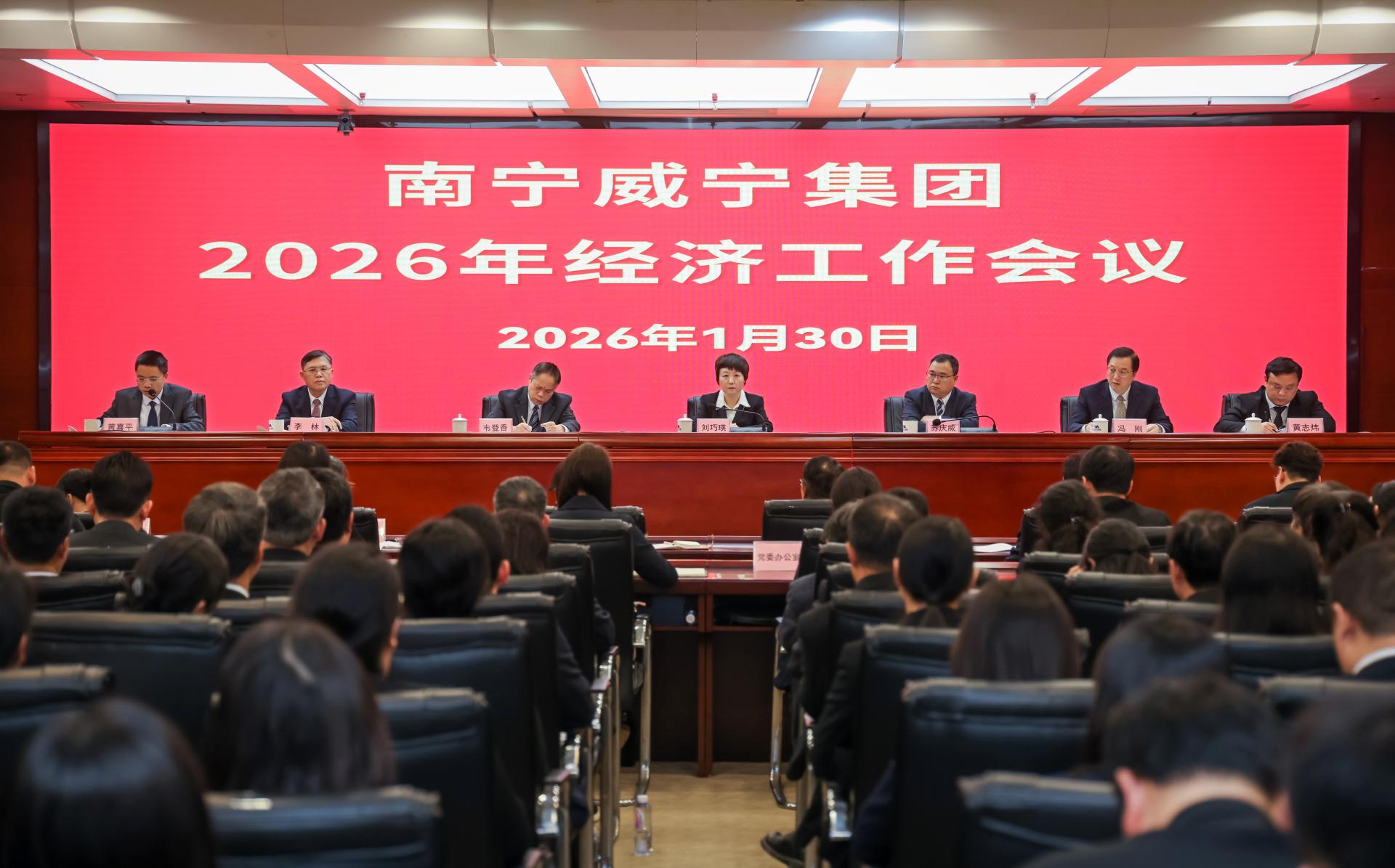 春潮涌动,战鼓催征。2026年1月30日上午,南宁威宁集团召开2026年经济工作会议,以“早谋划、早部署、早行动”的奋进姿态,全面总结2025年及“十四五”发展成就,科学谋划“十五五”战略蓝图,系统部署2026年开局攻坚任务,动员全体干部职工凝心聚力、乘势而上,以龙马精神奋力谱写集团高质量发展新篇章。集团党委书记、董事长刘巧瑛出席会议并讲话,集团党委副书记、总经理苏庆威代表经营班子作集团2025年度经济工作报告,集团副总经理黄喜平主持会议...